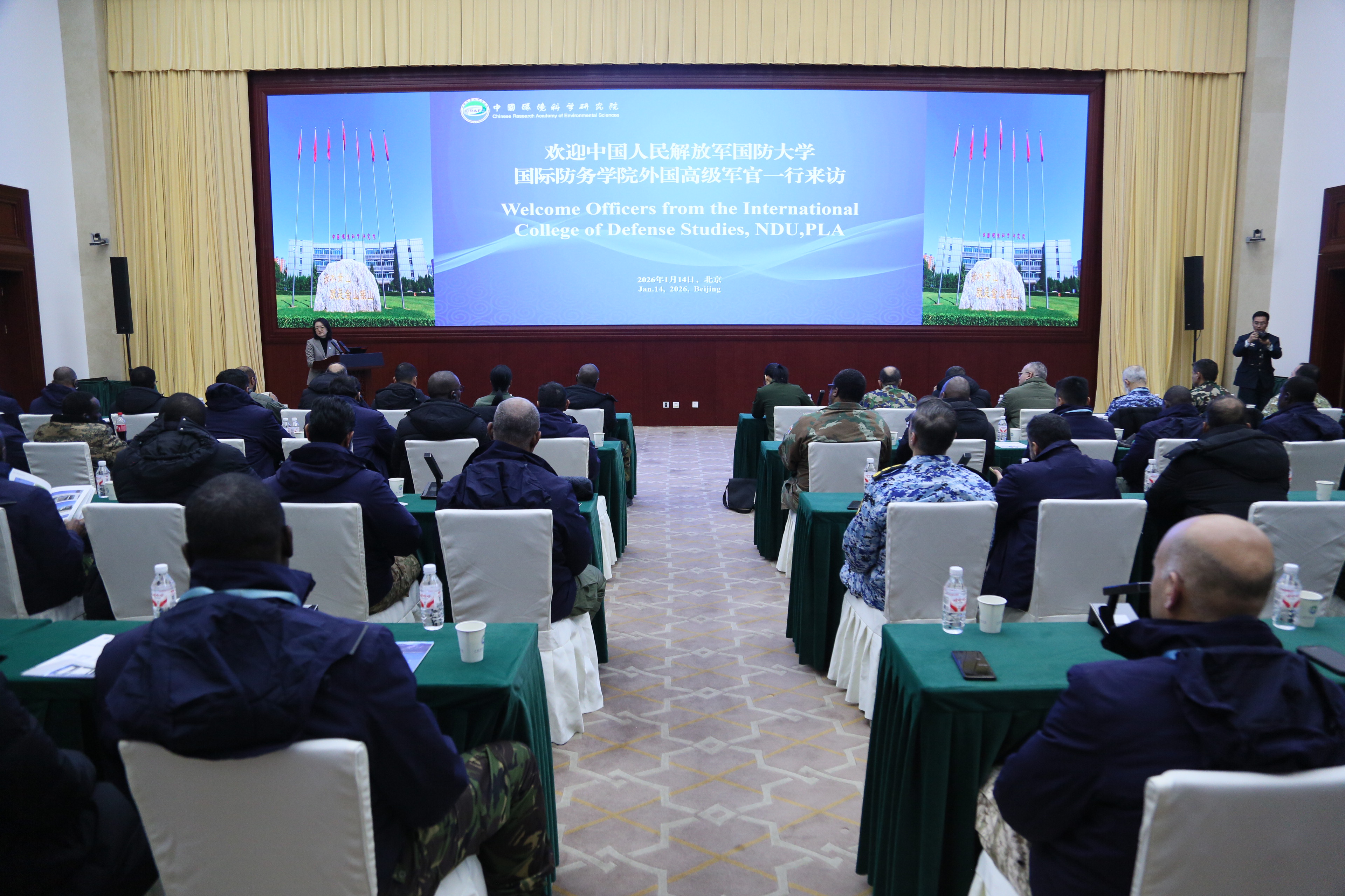 1月14日,中国环境科学研究院(以下简称中国环科院)接待国防大学国际防务学院90名外国高级军官来访,向其介绍中国大气治理经验并互动交流。